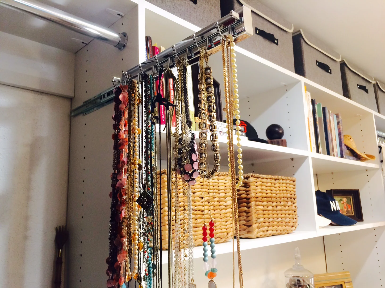 Closet Jewelry Organizer / Shop for your jewelry organizer online today or contact us.. Easy track rj2403 4 inch tall jewelry tray for easy track closet system white storage and organization closet organizers jewelry organizers build, inc. Coat the dowel with semigloss paint. A thin wooden dowel mounted inside a closet or cabinet door using cup hooks is the foundation of a simply chic jewelry organizer. A black velvet liner is included to prevent scratching and protect delicate pieces from harm. These two sets of three hanging shelves can.